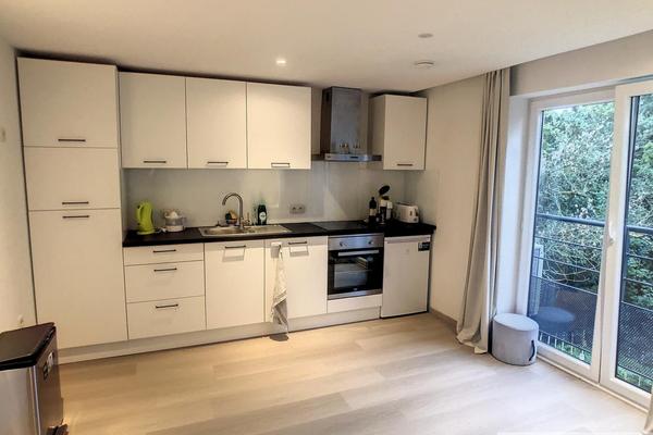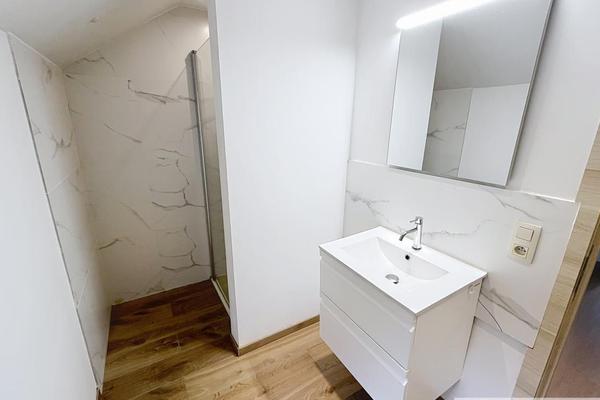 Superbe kot meublé avec 3 pièces privatives : salon, chambre et salle de douche avec WC.
