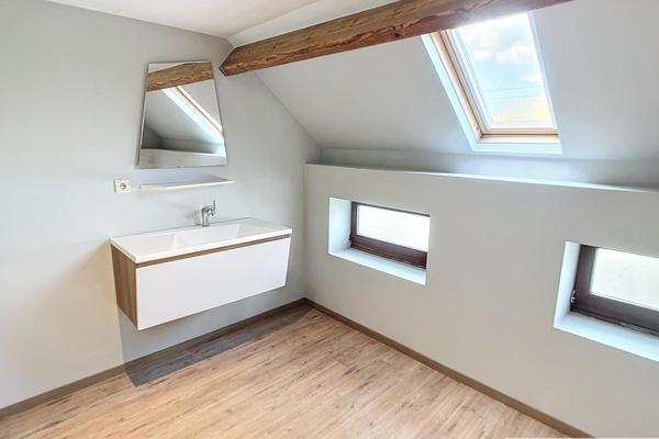 Gottechain, à 15 minutes de Louvain-la-Neuve, belle maison très lumineuse comprenant hall d'entrée, débarras, WC avec lave-mains, living, cuisine équipée, hall de nuit, 3 chambres dont une avec mezzanine et accès à un grenier de rangement. Belle terrasse et jardin exposés plein sud. Emplacements de parking privatifs à l'avant de la maison. Visite sur rdv.