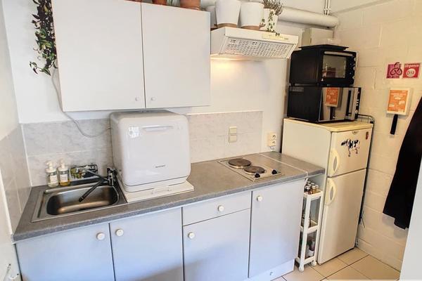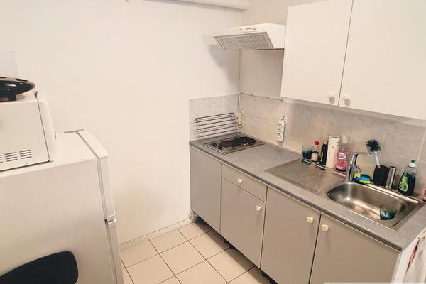 Rampe du Val 31 : Pièce principale avec coin cuisine équipée + salle de douche avec wc.