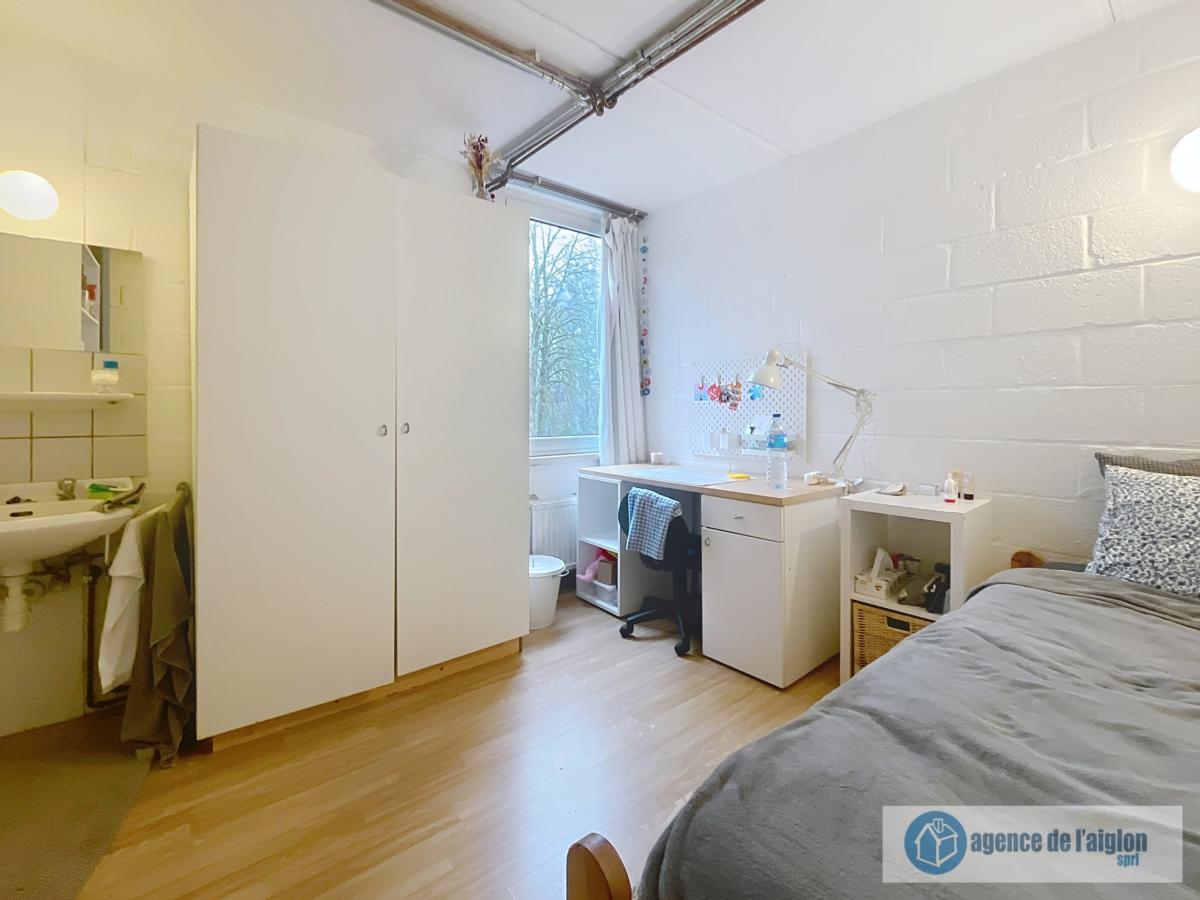 Chambre étudiante située dans le centre de Louvain-La-Neuve idéale pour investissement ou pour y mettre un enfant.