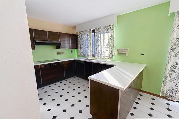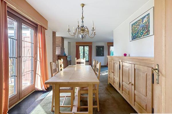 Hall d'entrée, vestiaire, WC séparé, salon, salle à manger, coin TV, cuisine équipée avec coin repas, bureau, garage.