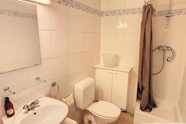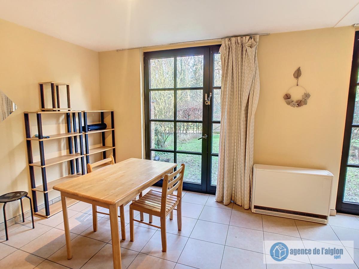 Beau studio meublé comprenant petit hall d'entrée, accès vers buanderie avec boiler, salle de douche avec wc, pièce principale avec cuisine équipée neuve (12/2024), jardinet. Parking et cave.
