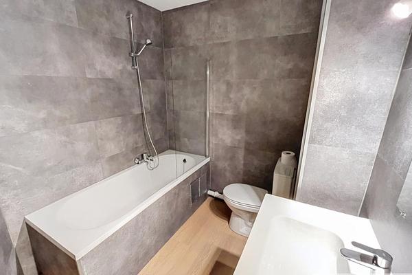 Descriptif : hall d'entrée, pièce principale avec coin cuisine équipée, salle de bains avec WC et balcon.