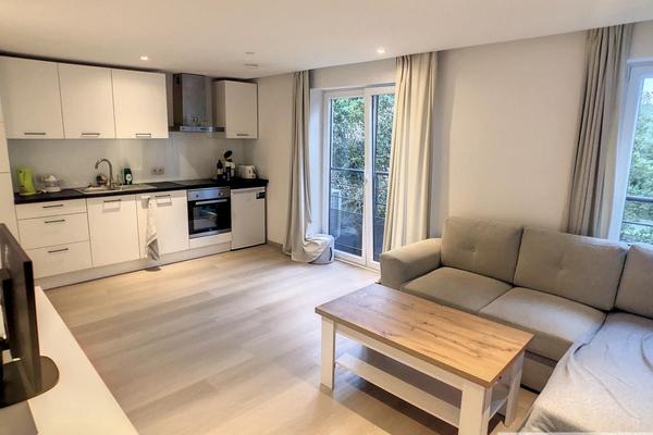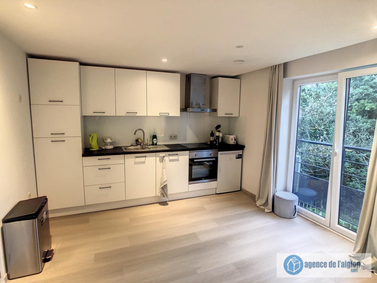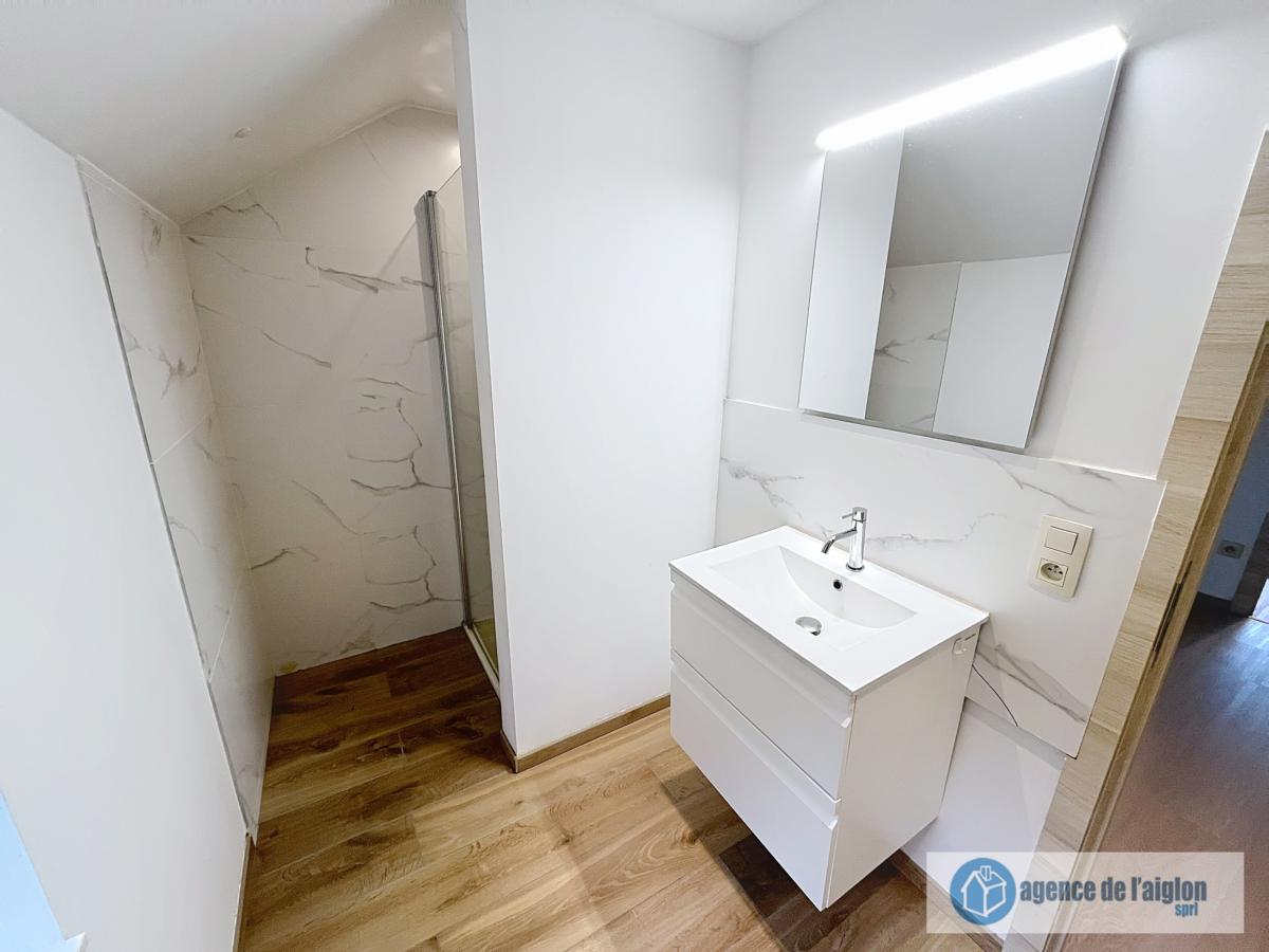 Superbe kot meublé avec 3 pièces privatives : salon, chambre et salle de douche avec WC.