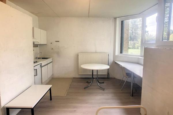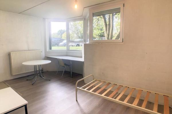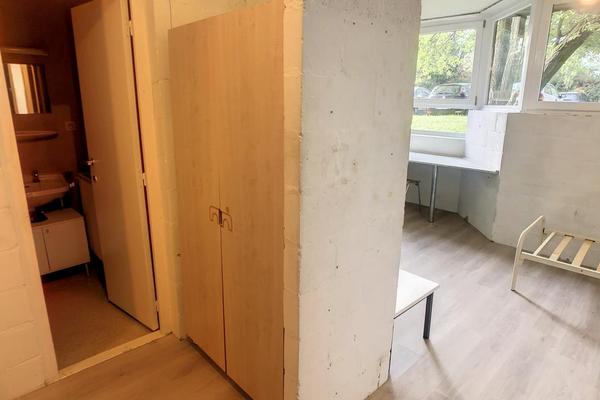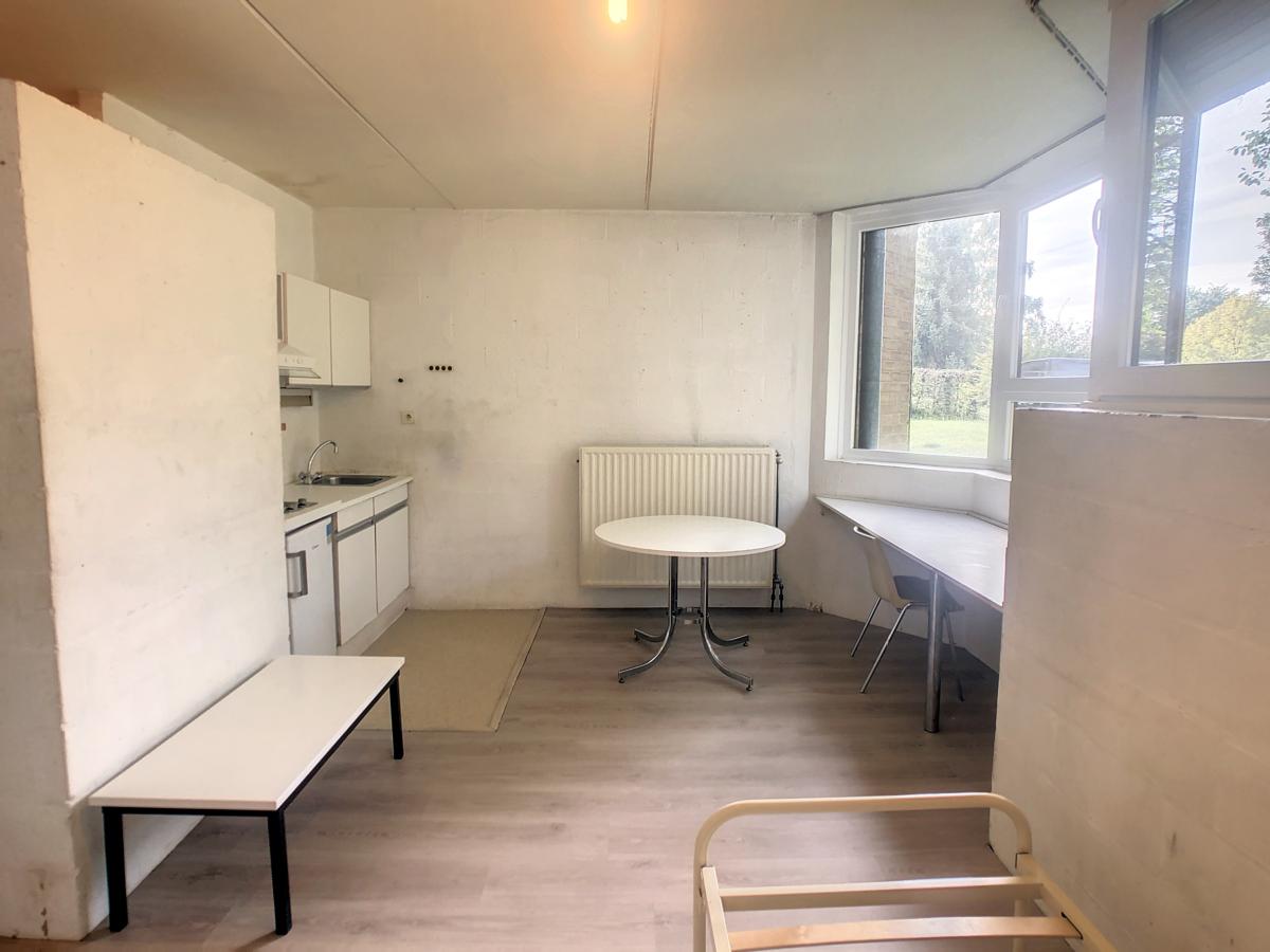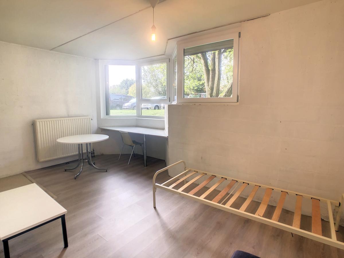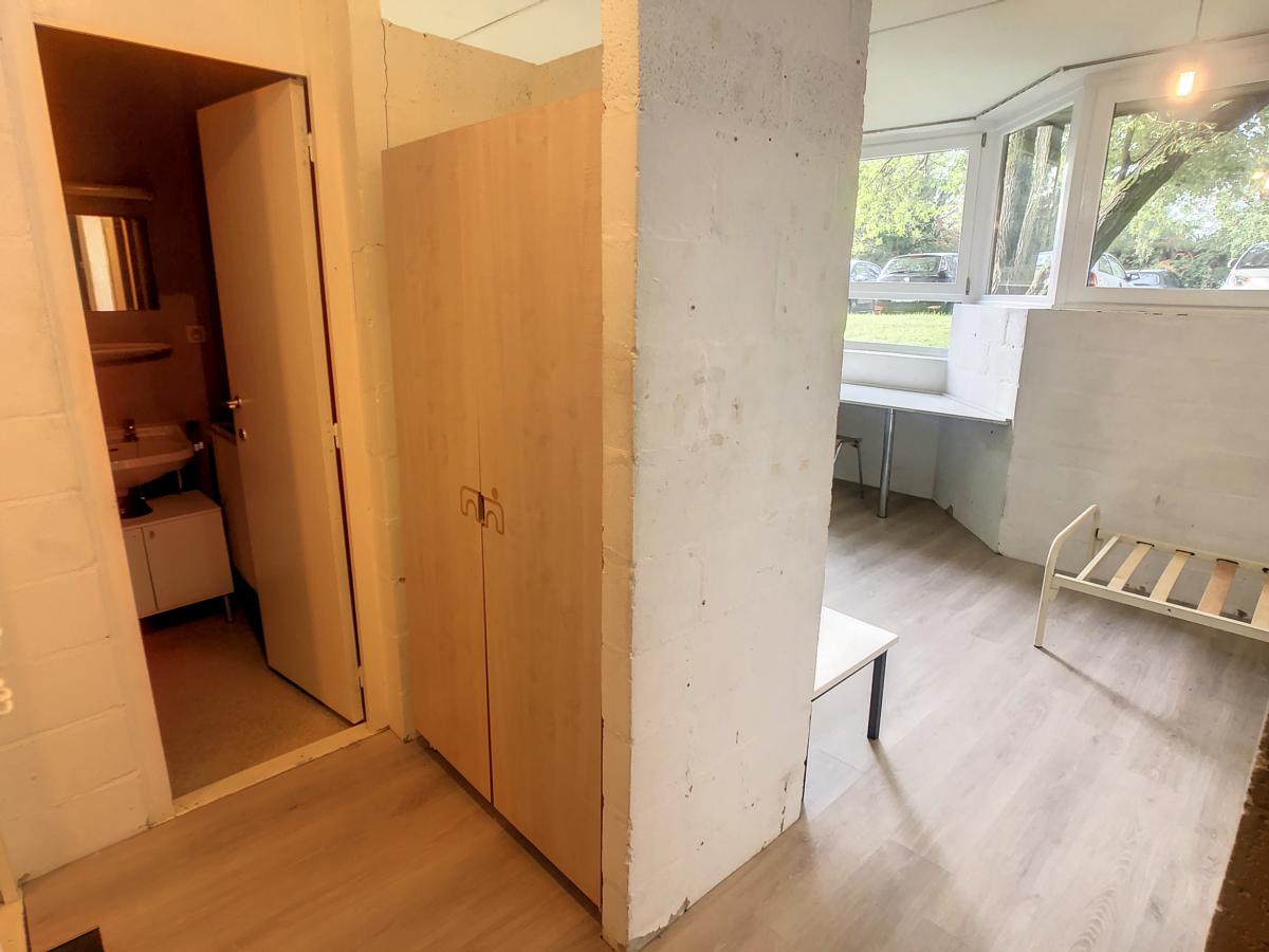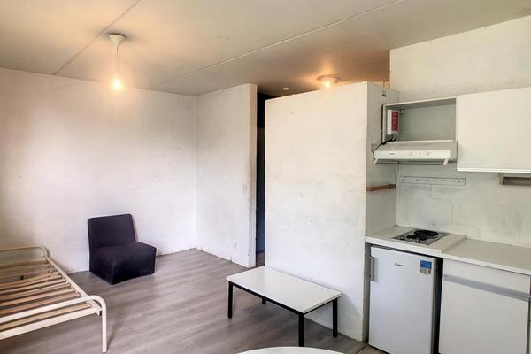Studio comprenant pièce principale, coin cuisine, salle d'eau et WC.