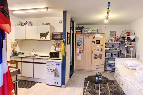 Studio comprenant pièce principale, coin cuisine et salle de douche