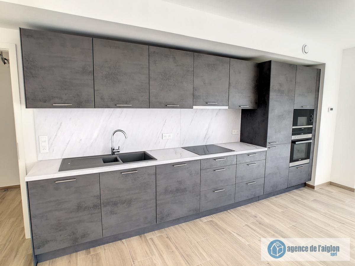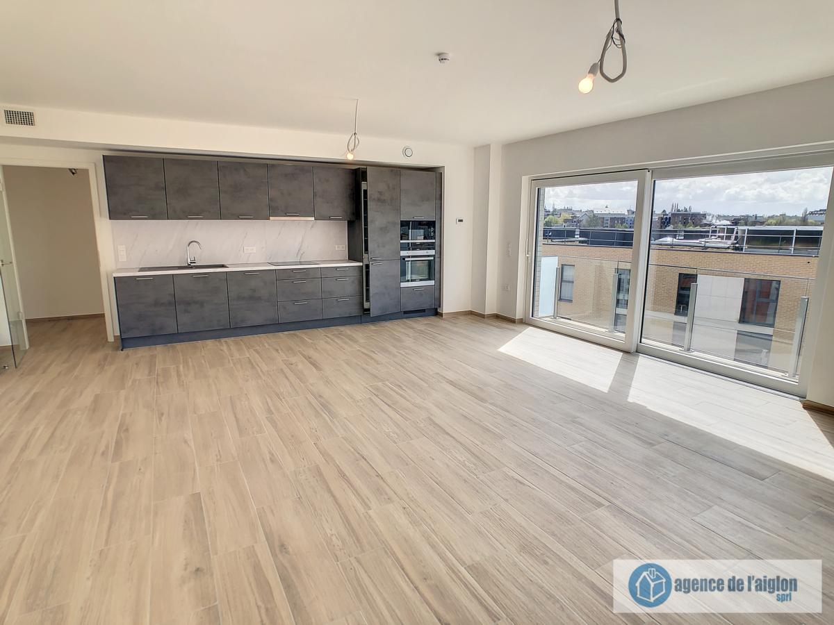 Superbe appartement très lumineux idéalement situé à 5 minutes à pied du centre de LLN comprenant : Hall d'entrée, pièce principale avec coin cuisine hyper équipée (36,5m²), 2 chambres (14m² et 10m²), salle de douche, wc avec lave mains, espace buanderie.