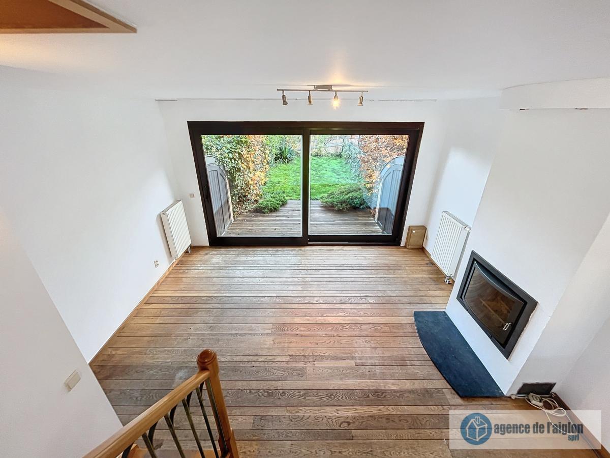 Niveau 1 : Hall d'entrée, WC, salon, salle à manger avec coin cuisine équipée, accès terrasse avec jardinet.