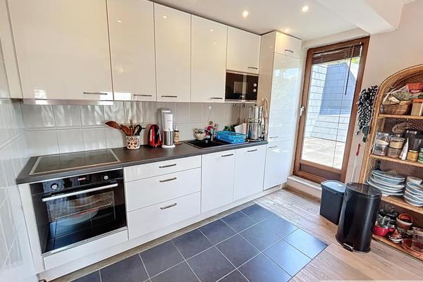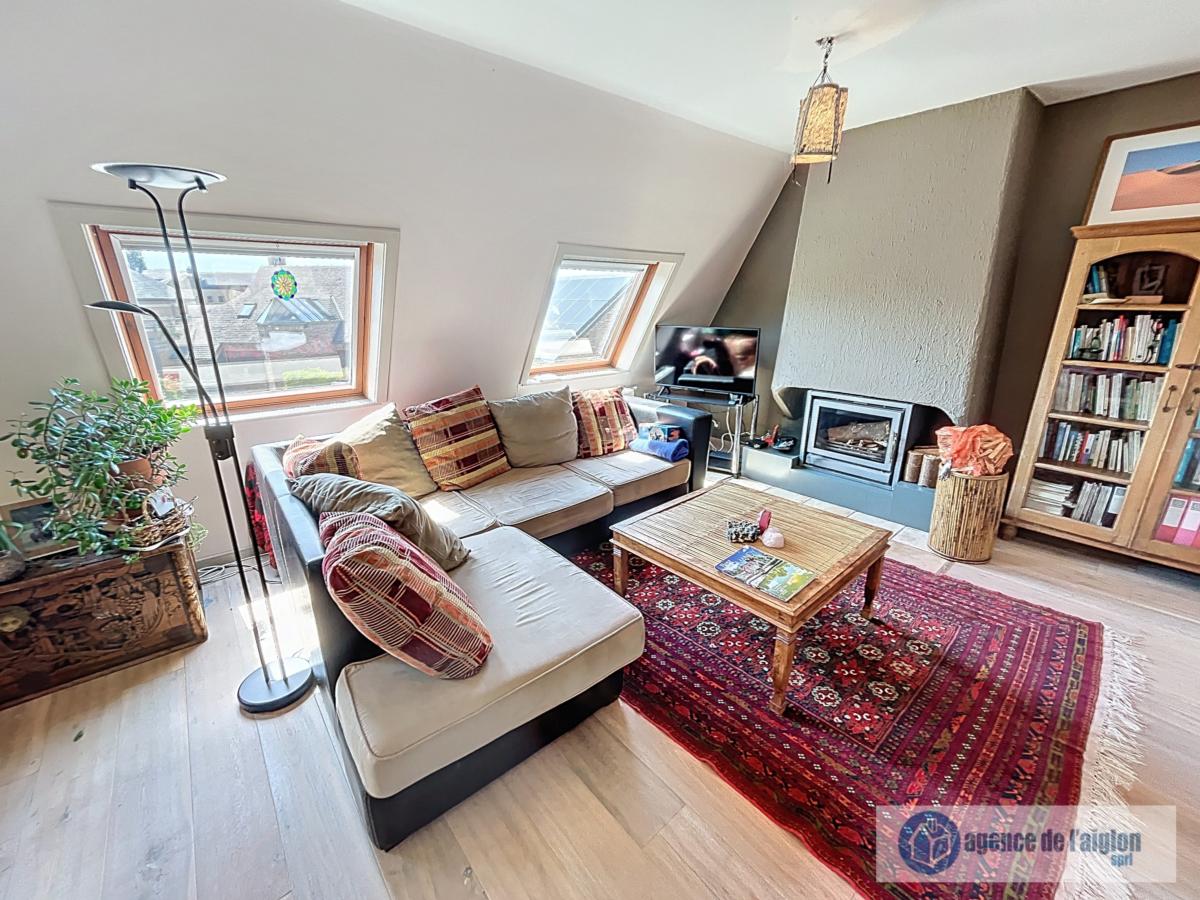 Descriptif : hall d'entrée, vaste séjour ultra lumineux avec feu ouvert (fonctionnel), cuisine équipée, 2 chambres (13,5m² et 9m²), salle de bains, WC avec lave mains, petit local buanderie et emplacement de parking privatif.
