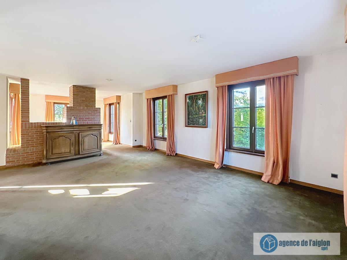 Hall d'entrée, vestiaire, WC séparé, salon, salle à manger, coin TV, cuisine équipée avec coin repas, bureau, garage.