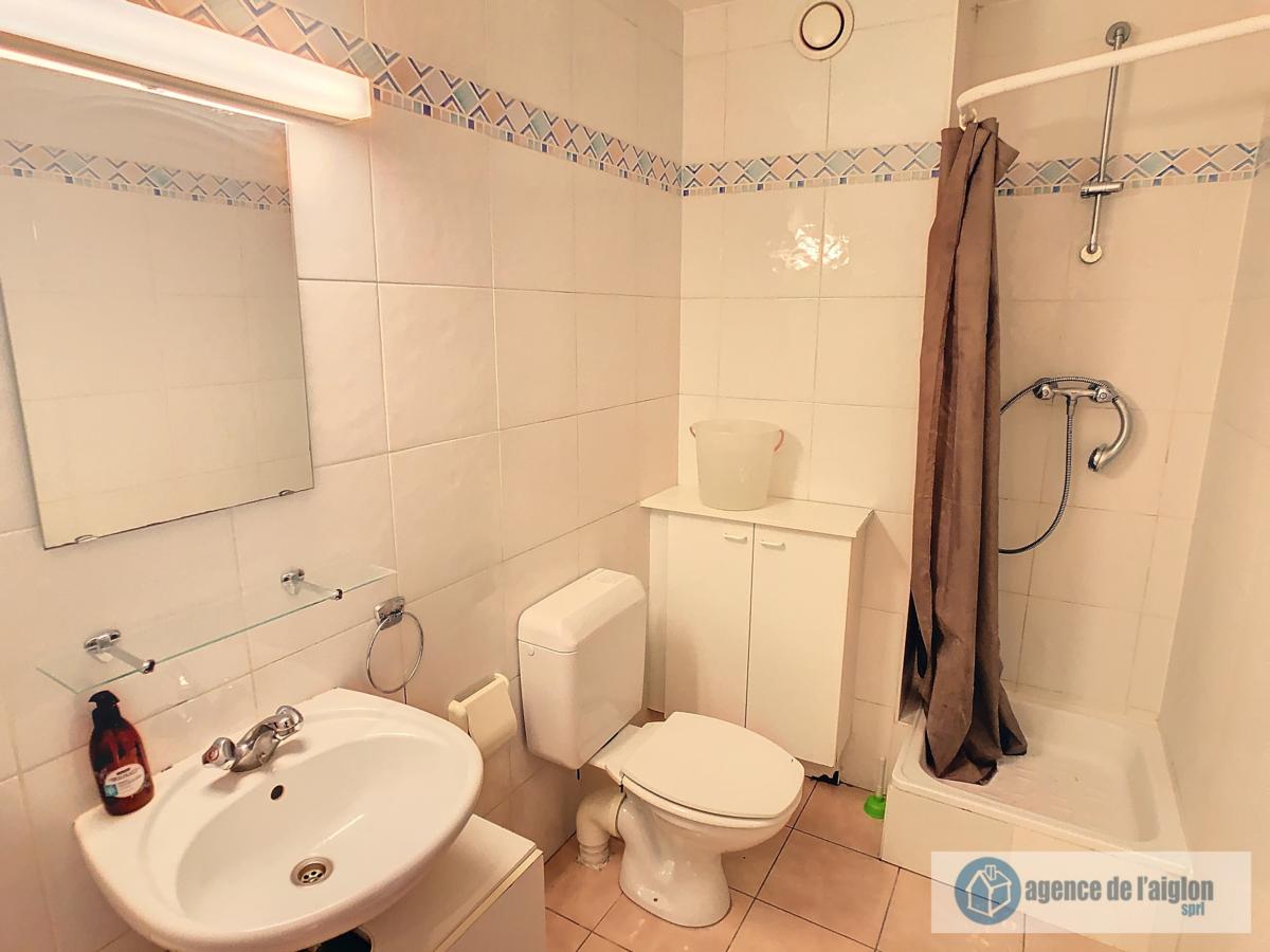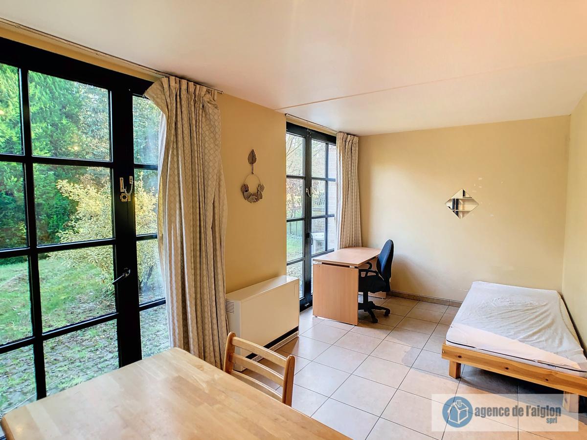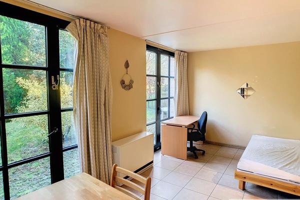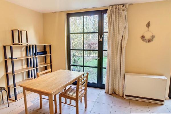 Beau studio meublé comprenant petit hall d'entrée, accès vers buanderie avec boiler, salle de douche avec wc, pièce principale avec cuisine équipée neuve (12/2024), jardinet. Parking et cave.