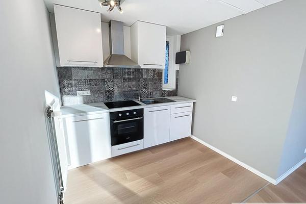 Descriptif : hall d'entrée, pièce principale avec coin cuisine équipée, salle de bains avec WC et balcon.